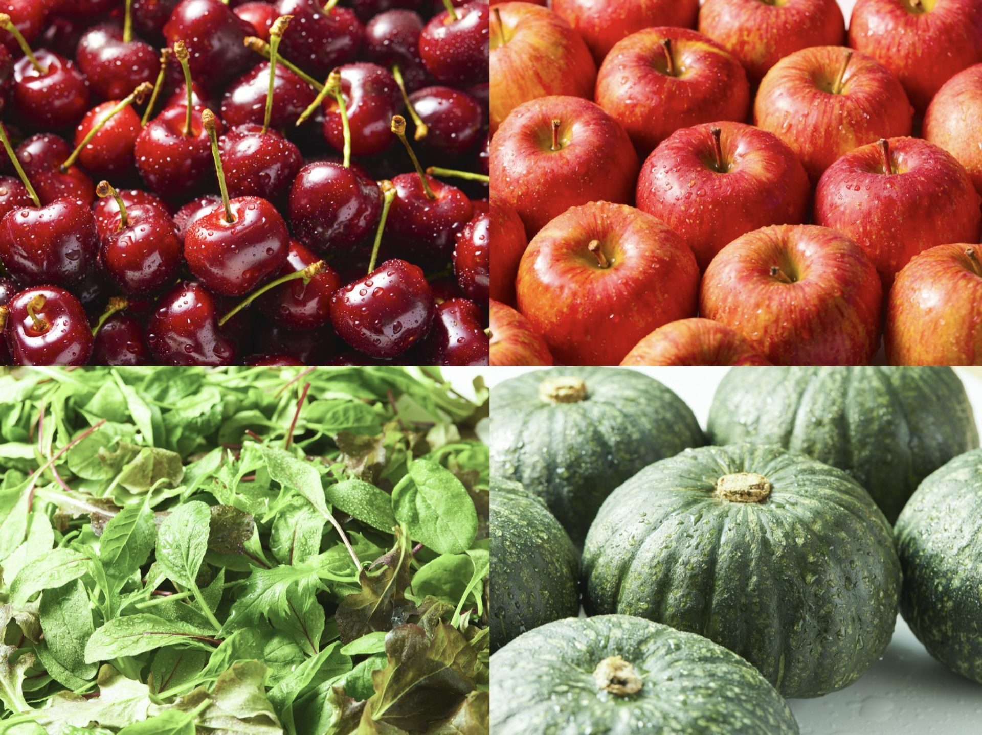 主要取扱品目であるアメリカンチェリー·りんご·ベビーリーフ·かぼちゃを象徴モチーフとして組み合わせることで、御社の事業そのものを表現したデザインです。